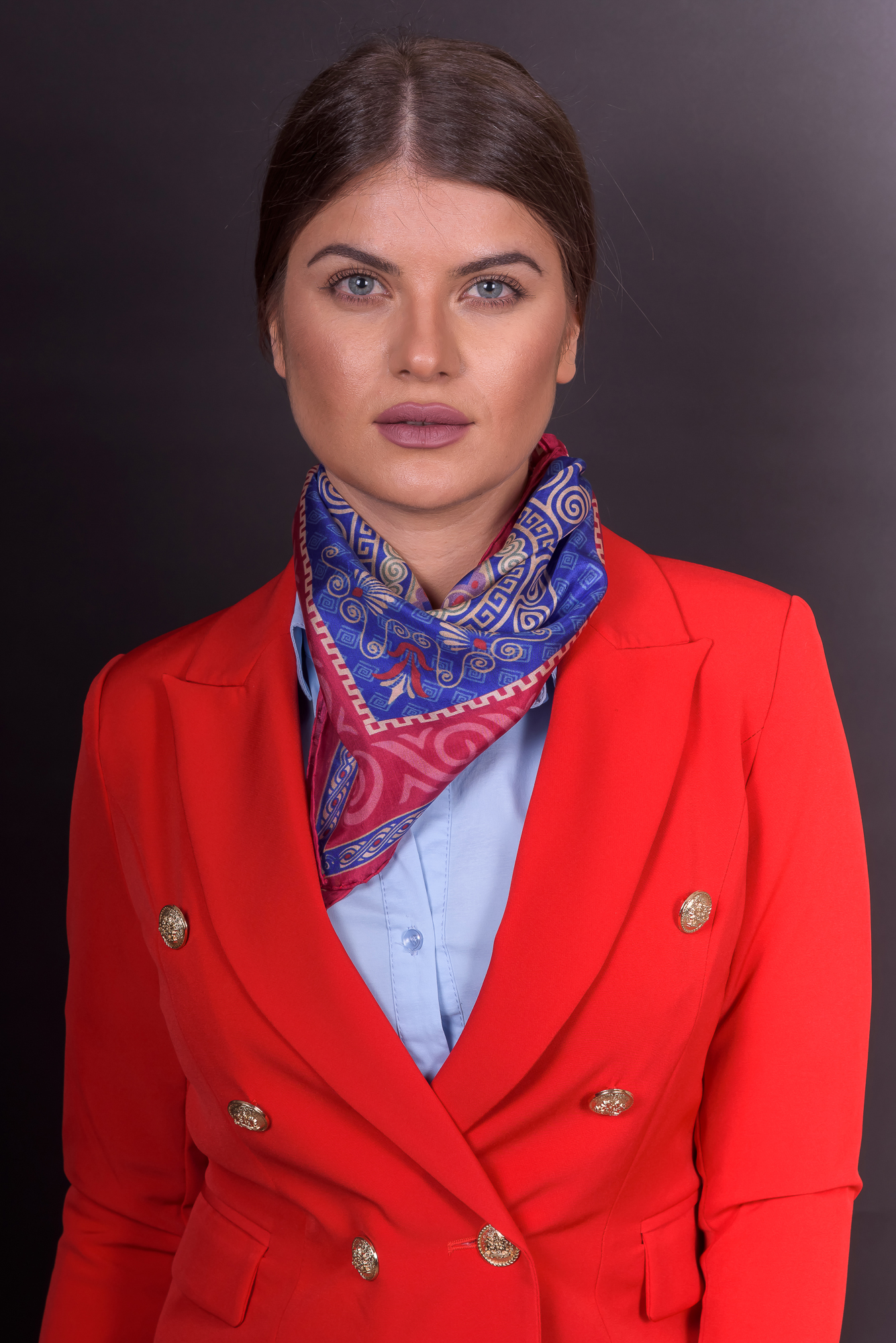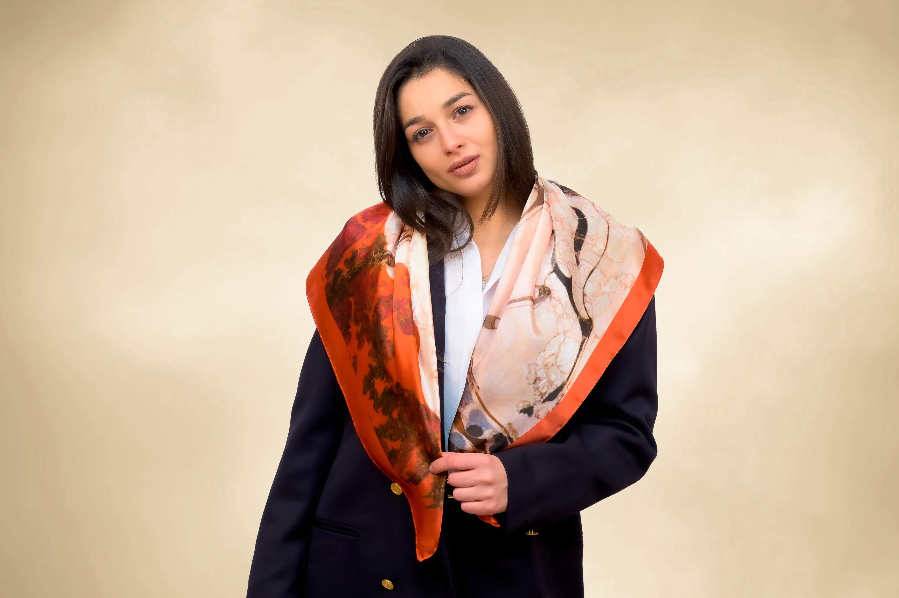 Red and bronze square large scarf