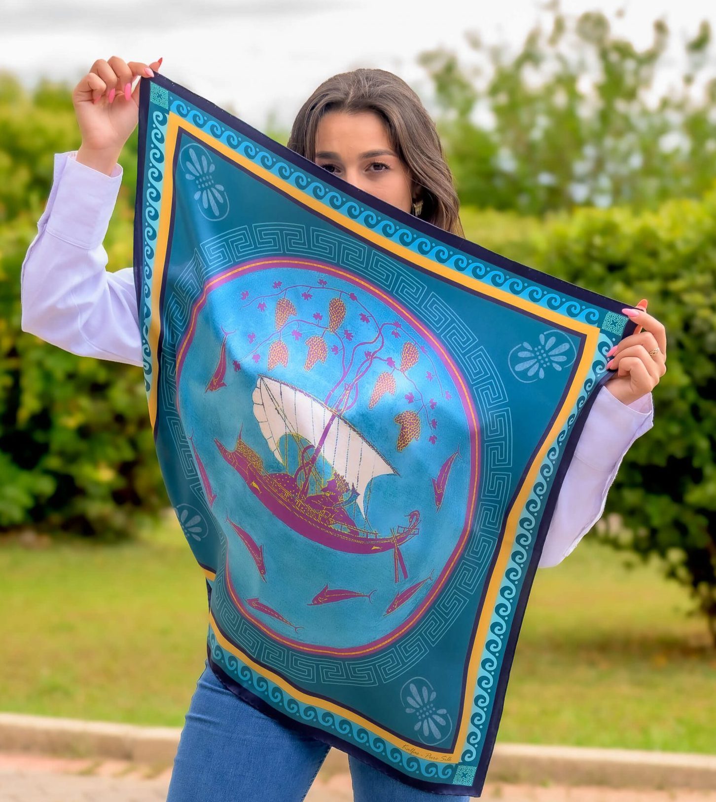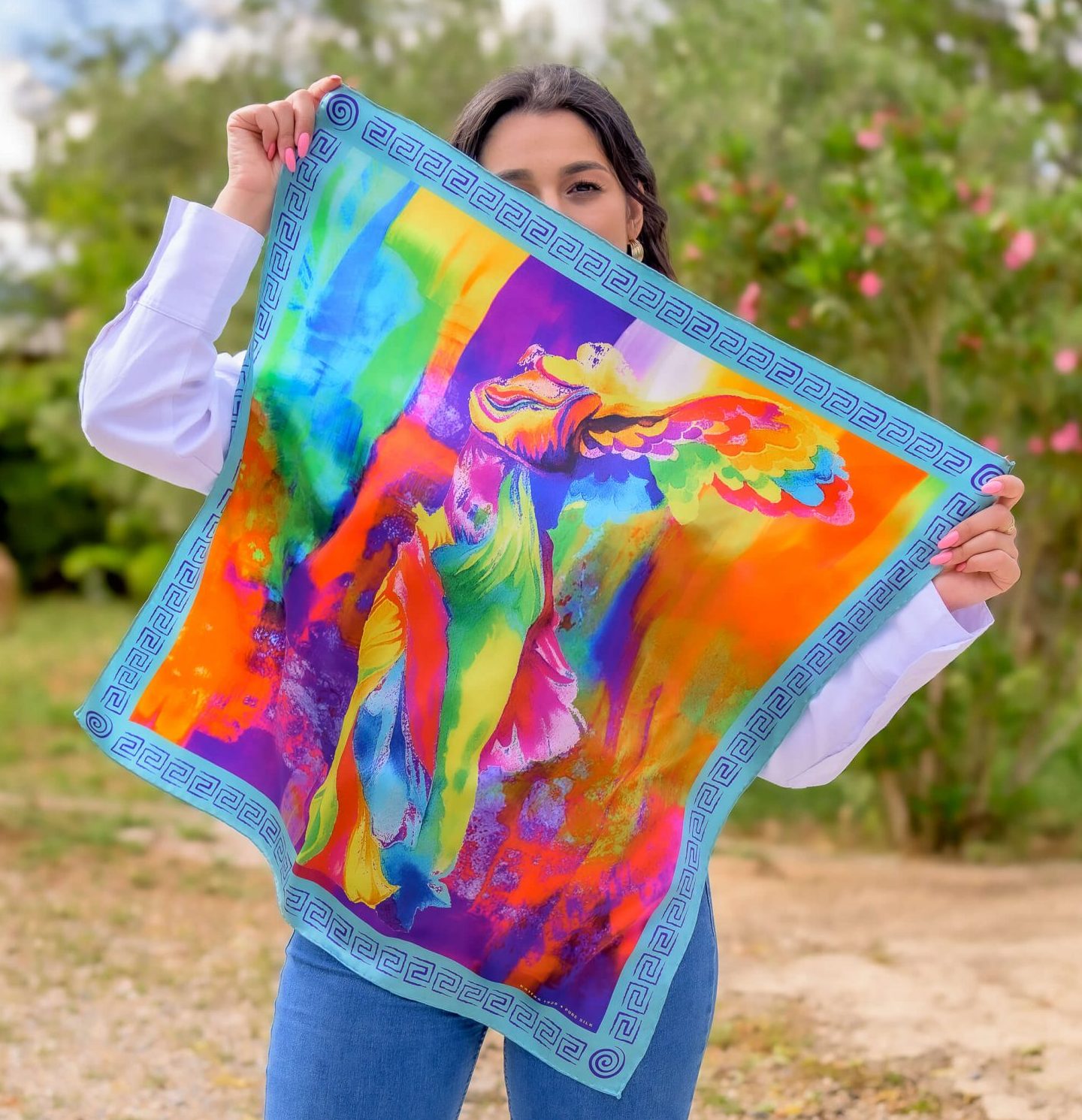 Silk Square Scarf in Dress Line (Victory Of Samothrace)