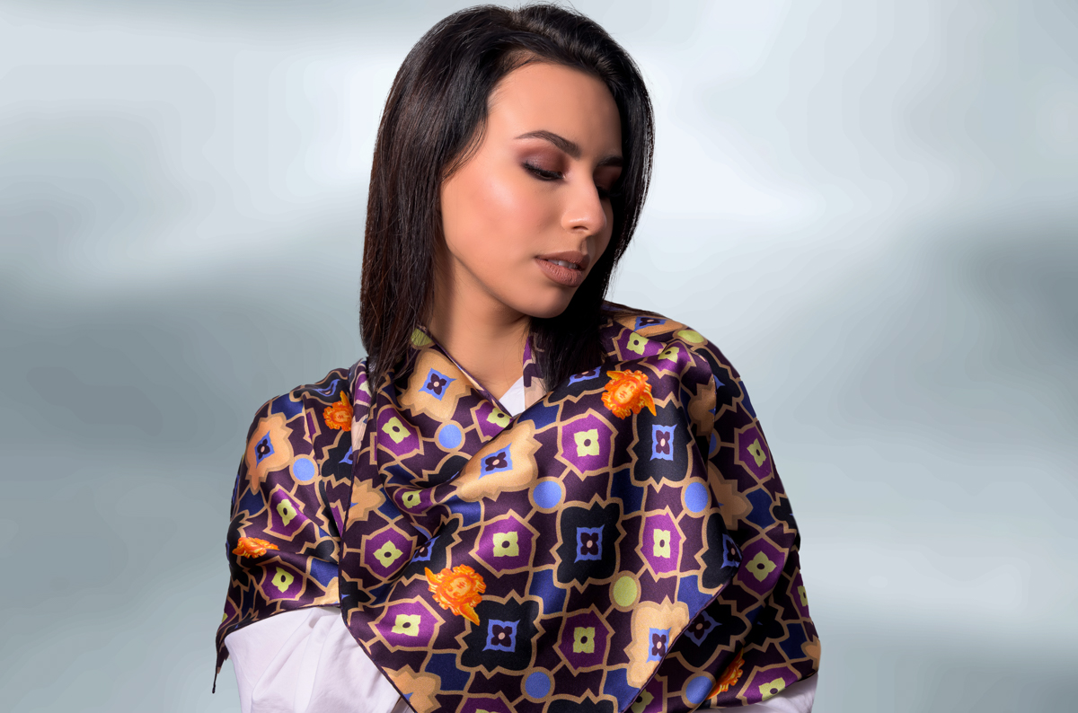 Dark silk scarf with mosaic design