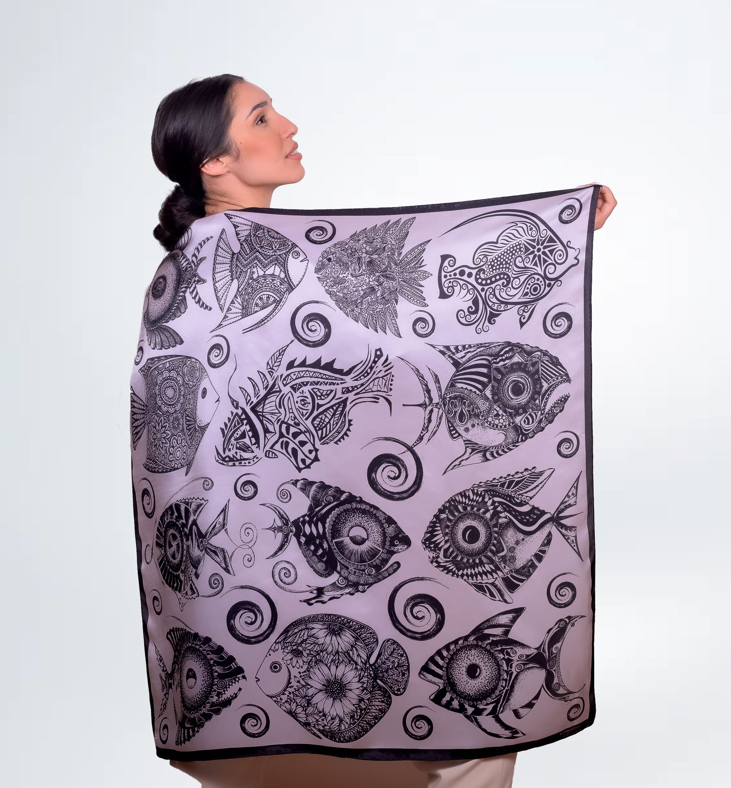 “The Fish” chic black silk scarf