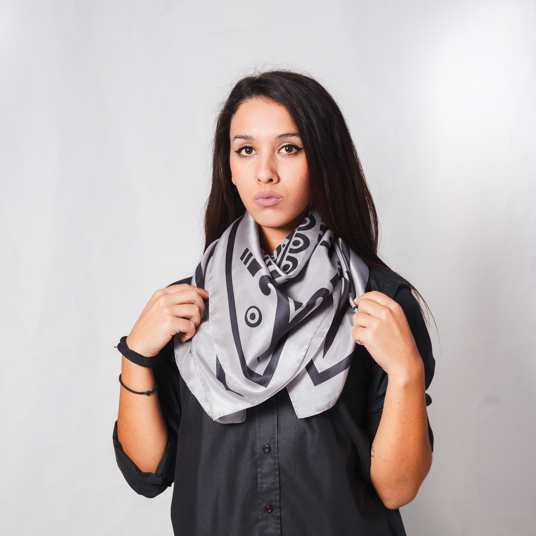 Black and grey big silk scarf