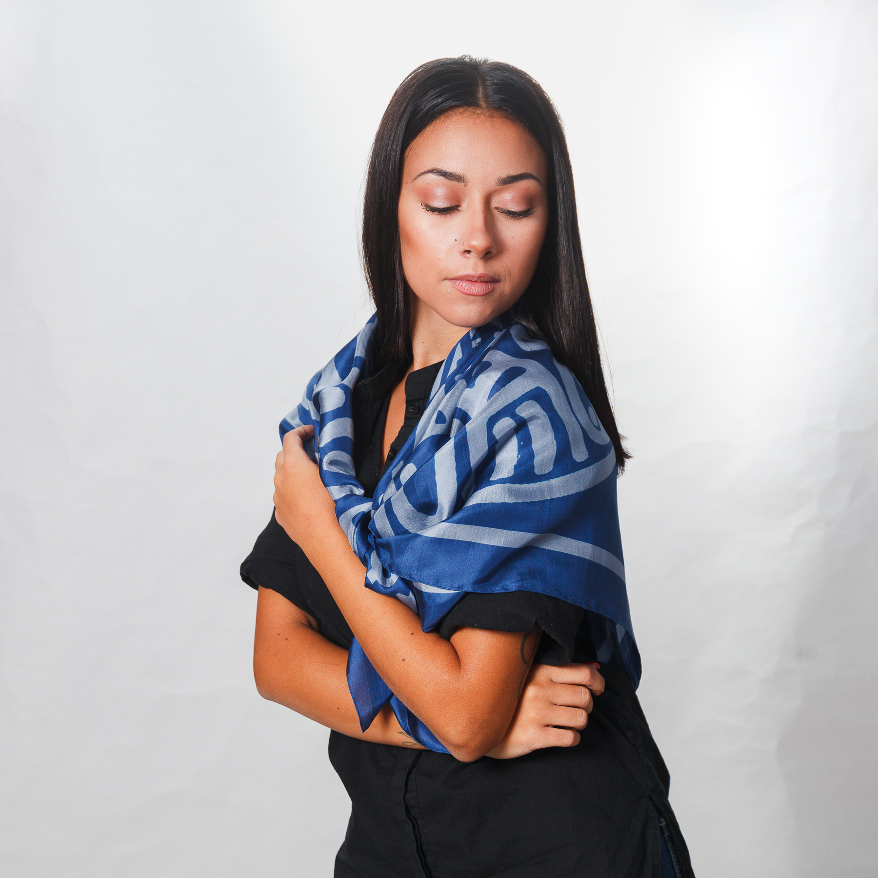 Blue and black silk scarf