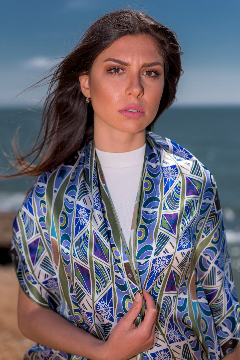 Blue and green silk scarf