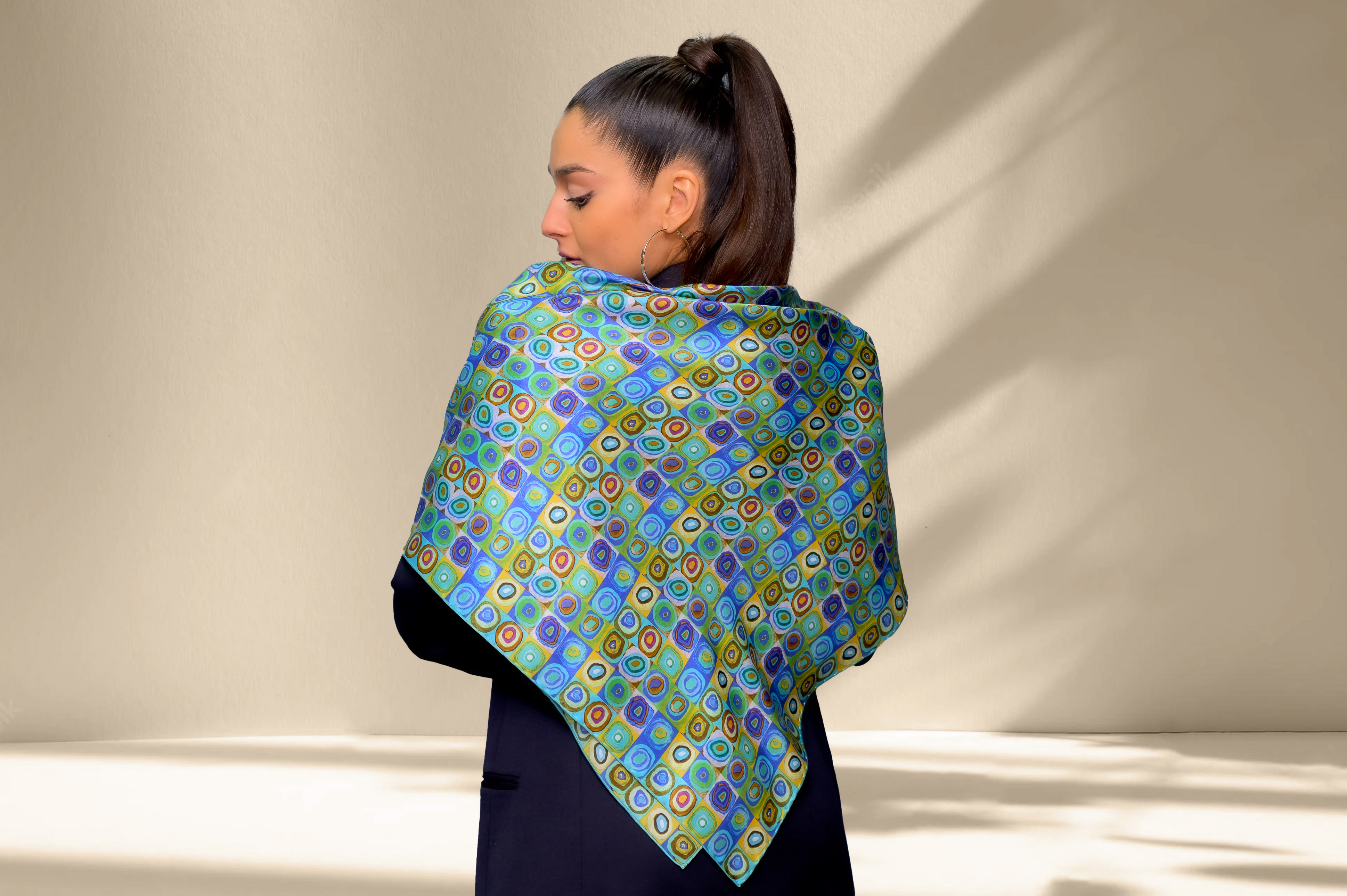 Blue and green square silk scarf