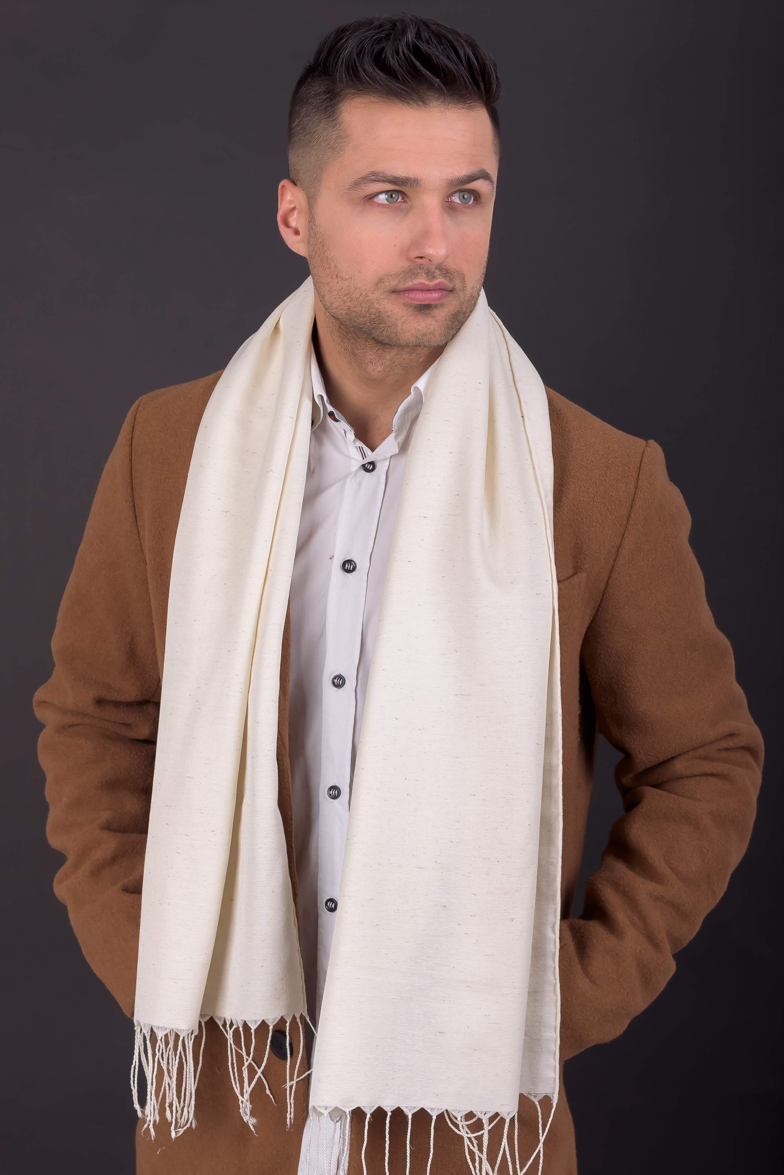 Beige and white pure silk scarf