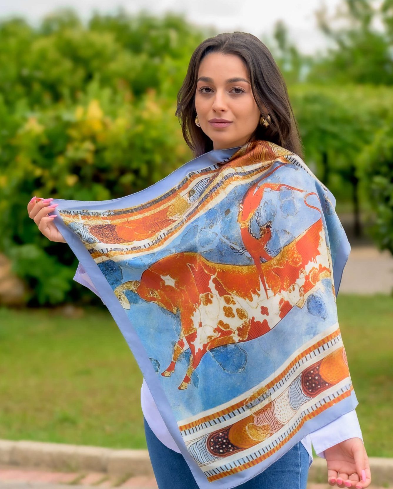 “Fiery Ermis” red silk scarf