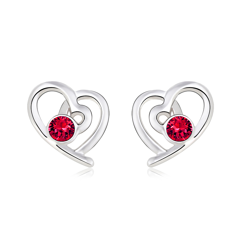 BHE07 SWAROVSKI BIRTHSTONE HEART EARRING JULY RUBY