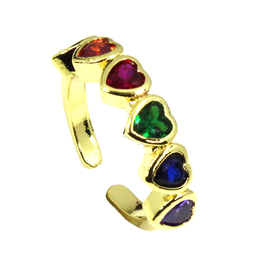 Coloured With Heart Gold Adjustable Ring (K1047)