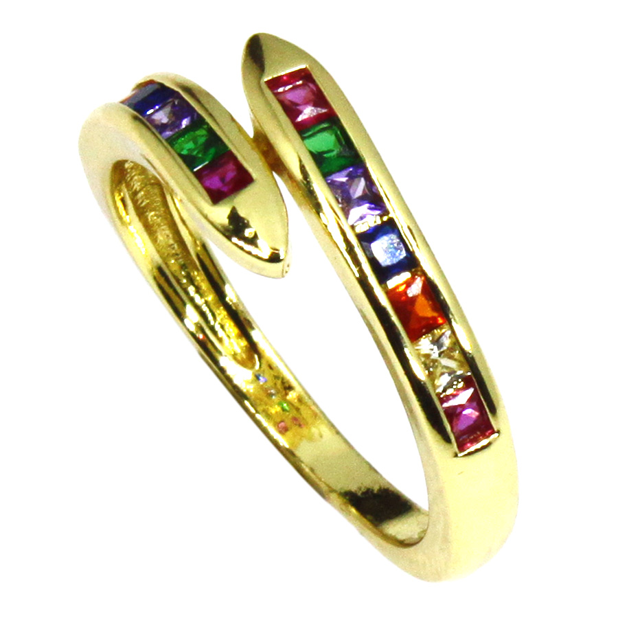 Coloured Split Rec Stones Gold Adjustable Ring (K1048)