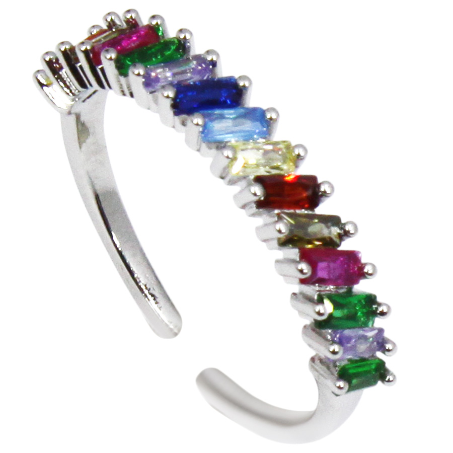 Coloured With Rec Stones Rhodium Adjustable Ring (K1050)