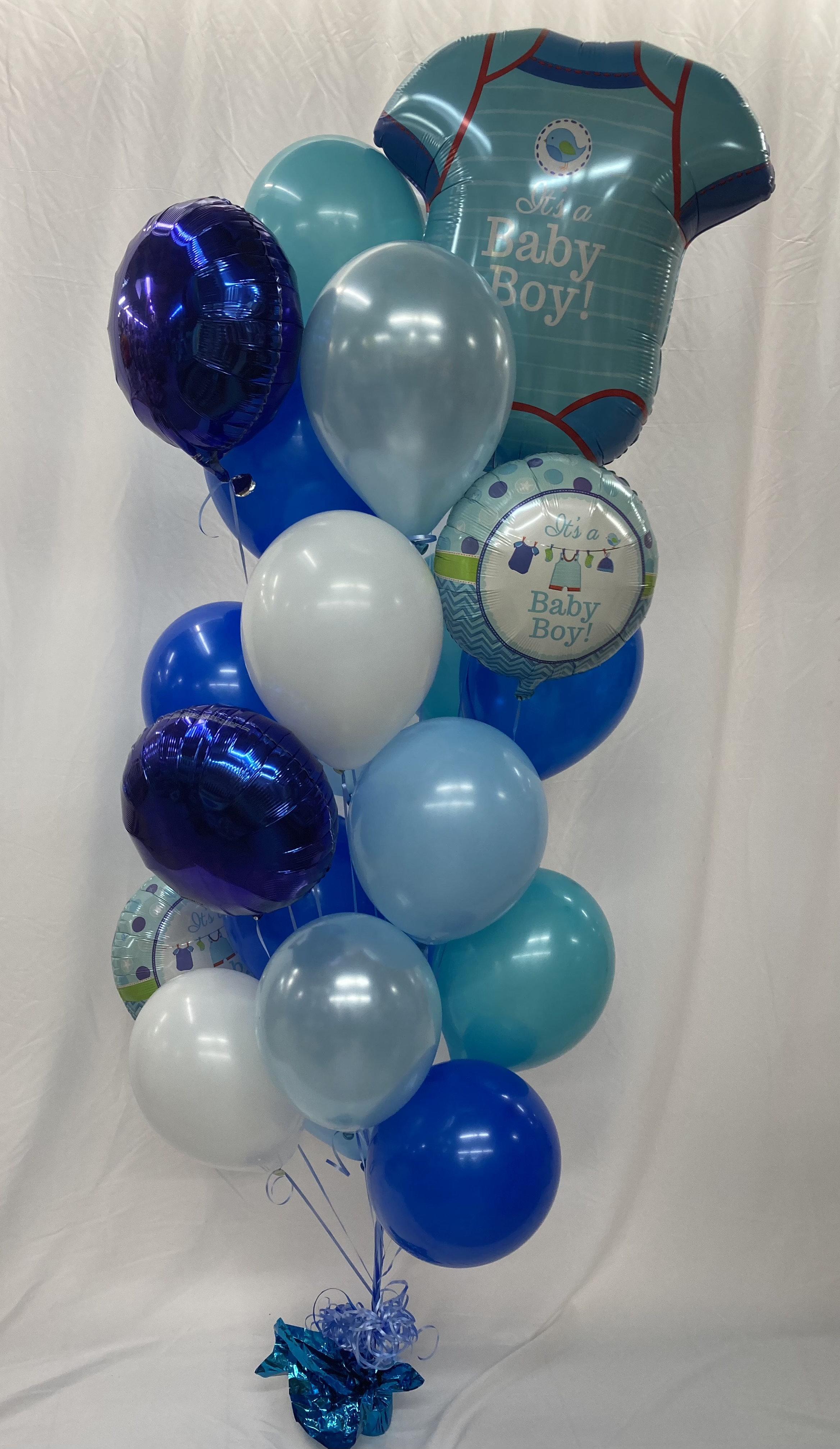 Blue Baby Boy Mylar Balloon Bouquet Inflated with Helium Including Weight